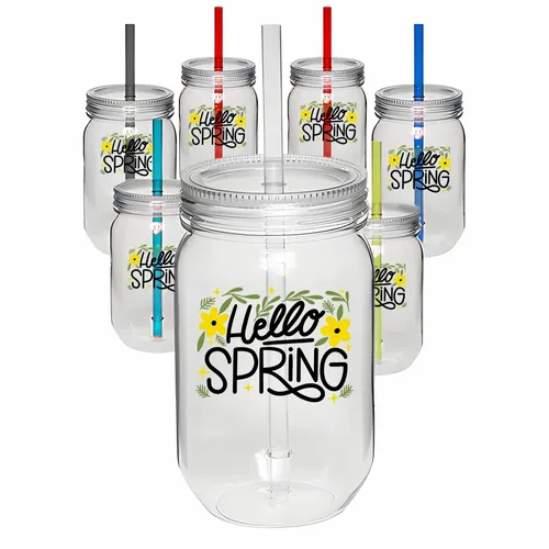 These 24 oz Classic Mason Jars are perfect for storing your favorite beverages. Made from durable AS plastic material, this Single Wall Mason Jar are lightweight and easy to carry. The screw-on lid and straw make it easy to drink from, and the clear plastic allows you to see what's inside. These jars are also dishwasher safe for easy cleaning. They have a 710 mL capacity and are perfect for your favorite drinks, taking drinks on the go. Order your set of 710 mL Classic Mason Jars today and start enjoying all the benefits of these amazing jars!